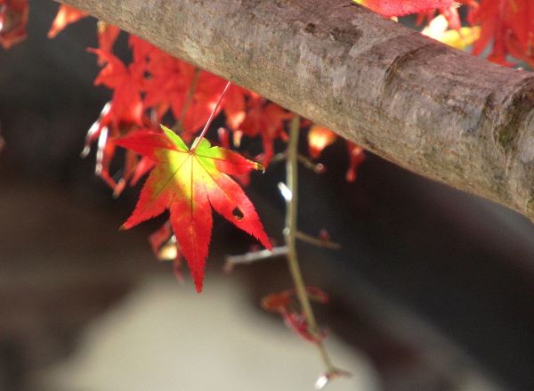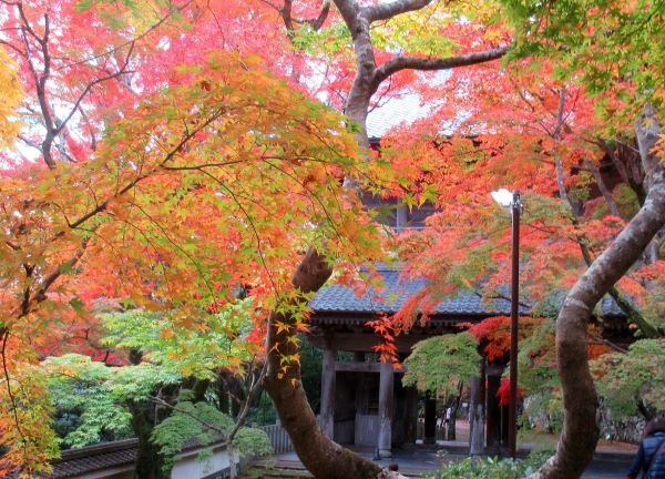 | 頓智で知られる一休さんが晩年を過ごしたお寺が大阪の田辺市にあります。境内には、一休さんの石像やトンチにちなんだ橋などもあります。一休さんの頓智の如くに冴え渡る紅に萌える紅葉は見事でした。 |